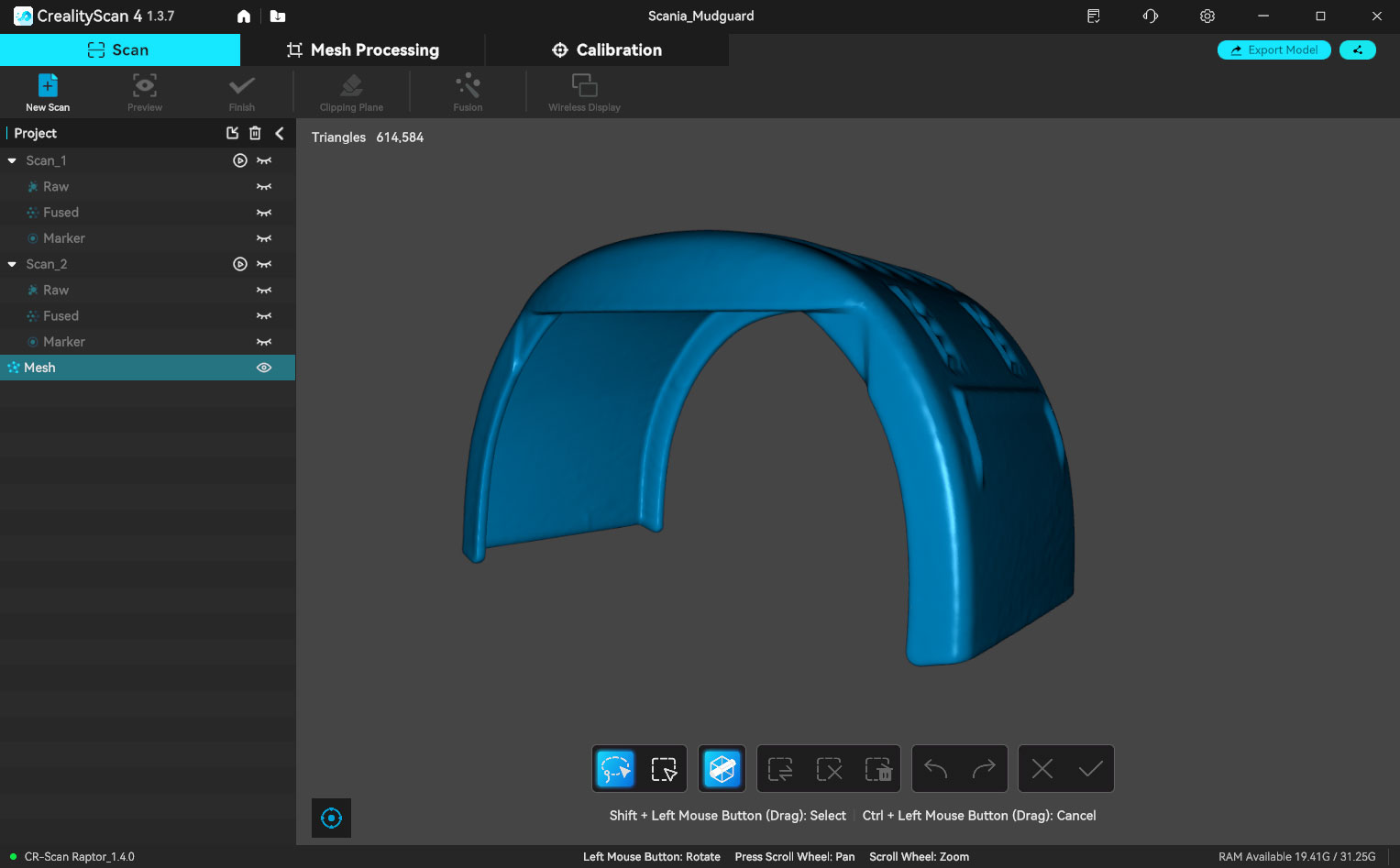 I opted for the Creality Raptor system, although there are numerous manufacturers to chose from. The Raptor includes a combination of NIR (near Infra Red) and Laser scanning modes, the latter of which produces almost metrology-grade scans, with a resolution of up to 0.1mm.